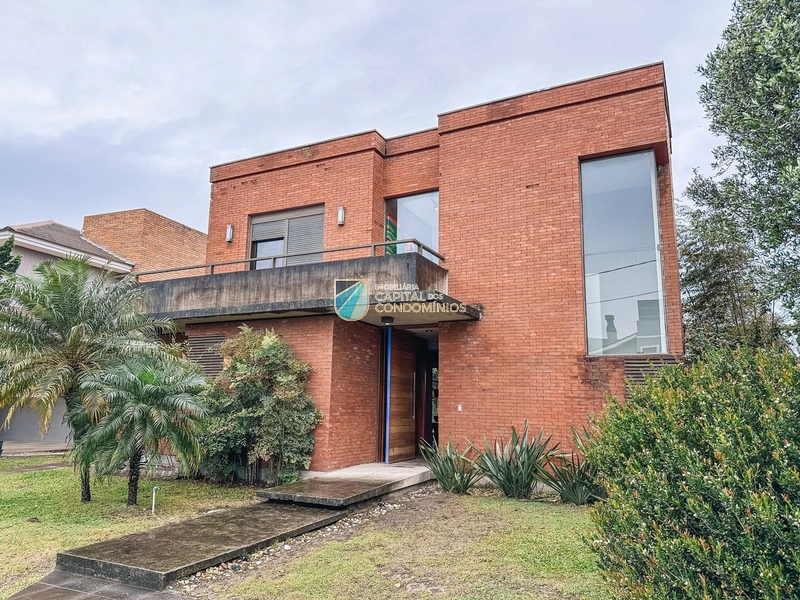 Sobrado com excelente localização no condomínio Ventura em Xangri-lá. Possui 4 amplas suítes sendo uma térrea, living amplo com 3 ambientes, lareira, pé direito duplo no living, cozinha estilo americana com gourmet e churrasqueira, lavanderia, abrigo para 2 carros, 2 amplos terraços, amplo pátio com fundos para área verde.